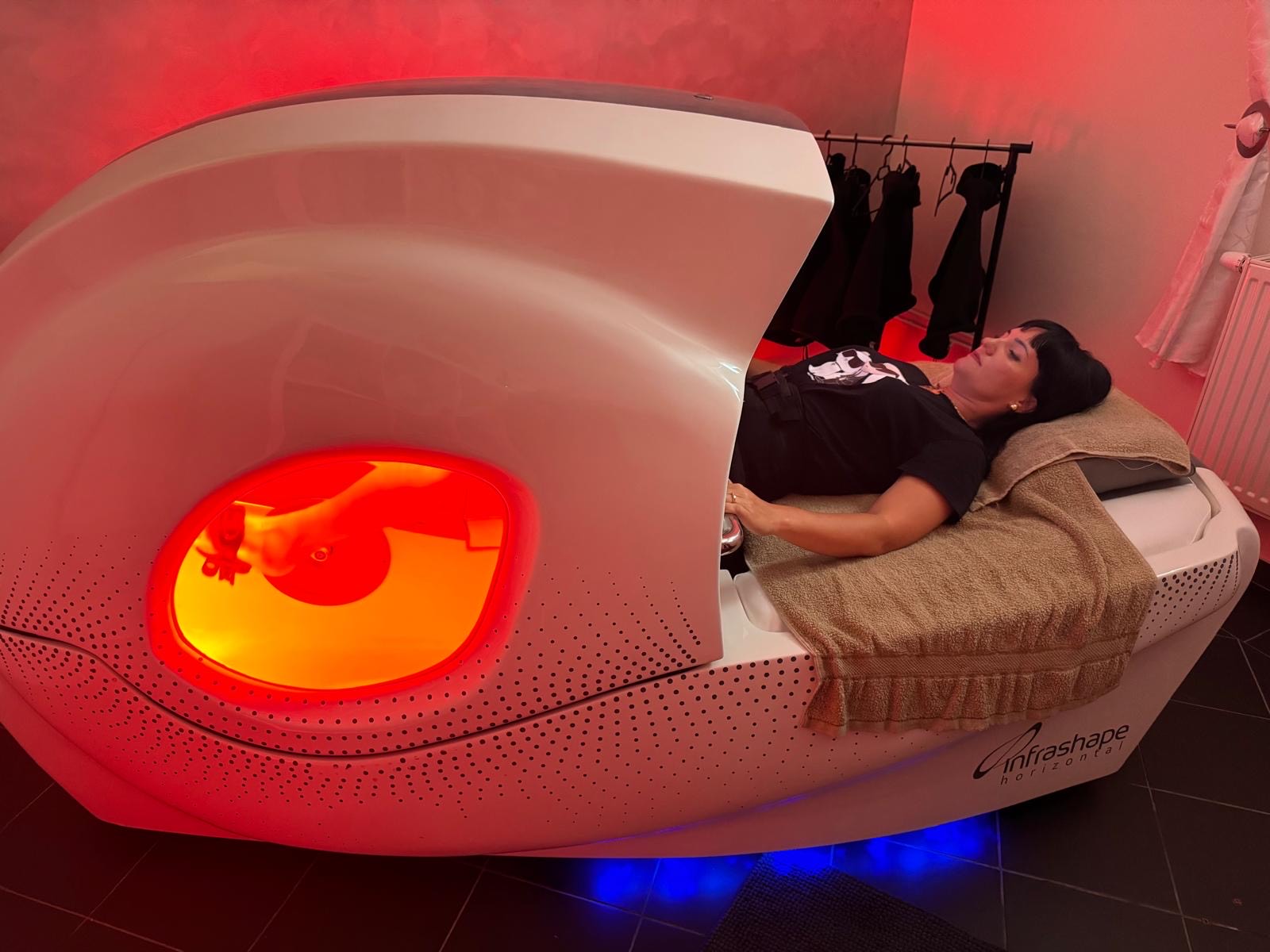 Počas tréningu pohodlne ležíte, uzavretí ste od pása nadol, nohami bicyklujete a rukami sa zapierate. Vďaka aplikácii Multivision môžete cestovať bicyklom po celom svete, sledovať seriál alebo len počúvať Vašu obľúbenú hudbu. Vplyvom infračerveného svetla sa stimuluje krvný obeh, naštartuje sa metabolický proces a Vaše telo naň zareaguje potením. Infračervené svetlo dopĺňa vákuová masáž, ktorá striedaním vysokého a nízkeho tlaku intenzívne dodáva krv do tukových tkanív v problémových oblastiach a urýchľuje metabolizmus, čož vedie k zvýšenému spaľovaniu kalórií. Na dosiahnutie ešte lepšieho výsledného efektu a vyššej účinnosti tréningu pridávame klientovi jednorazové igelitové nohavice a ponúkame krémy na spaľovanie tukov a odbúravanie celulitídy.